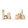 Accessori per presepe: Casette arabe (2 soggetti). Dimensioni: 11 x 19 x 18 cm. Materiali: legno, cartone e stucco. Realizzato artigianalmente in Italia.