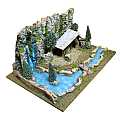 Accessori per presepe: Paesaggio con fiume luminoso. Il tratto di fiume è illuminato da LED a luce fredda atti a ricreare l'effetto acqua. Alimentazione: batterie (non incluse). Questo bellissimo paesaggio per presepe è compatibile con statuine della linea da 6 o 7 centimetri. La scenografia per presepe è la ricostruzione di una parete naturale (resa con sughero), dove si trova una cascata (dipinta) e un fiumiciattolo. Tale fiume è espandibile con altri tratti di fiume della medesima linea di prodotti per presepi. Il corso d'acqua (simulato da una pellicola di plastica, quindi non compatibile con l'uso di acqua o liquidi) è illuminato da LED per donare maggiore fascino alla scena. La fedele resa degli elementi naturali è ottenuta grazie al sapiente uso di sughero e muschio. In prossimità del corso del fiume / torrente, vi è una capanna in legno atta ad ospitare le statuine della sacra famiglia, l'asinello e il bue. Questa scenografica per presepe è stata realizzata per poter essere usata con statuine della linea da 6 o 7 cm. Dimensioni: 36 x 56 x 25 cm. Realizzato artigianalmente in Italia.