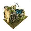 Accessori per presepe: Cascata nel lago (Alimentazione elettrica 220 V). Dimensioni: 30 x 20 x 24 cm. Materiali: legno, sughero e muschio. Realizzato artigianalmente in Italia.