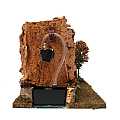 Accessori per presepe: fontana con fiume. L'acqua sgorga dalla parete della montagna per finire in una vaschetta, in cui continua a scorrere e a circolare grazie alla pompetta. Dalla vaschetta parte un tratto di fiume (non formato da vera acqua, ma simulato tramite un tratto colorato di azzurro e ricoperto da una pellicola di plastica) che può essere usato come inizio di un fiume componibile con altri tratti di fiume acquistabili separatamente. La fontana funziona con una classica spina elettrica di casa (Alimentazione elettrica 220 V). Dimensioni: 28 x 21 x 19 cm. Materiali: legno, sughero e muschio. Realizzato artigianalmente in Italia.
