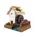 Accessori per presepe: Mulino Ad Acqua Con Movimento Elettrico. Alimentazione elettrica 220 V. Materiali: legno, cartone, sughero e muschio. Dimensioni: 13 x 13 x 9 cm. Realizzato artigianalmente in Italia.