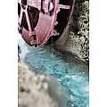 Accessori per presepe: Mulino con ruota che gira, alimentazione elettrica 220V. Il mulino è su un tratto di fiume. Materiali: legno, sughero, muschio e stucco. Dimensioni: 17 x 12 x 16 cm. Realizzato artigianalmente in Italia.