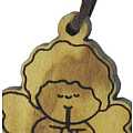 Ciondolo in legno d'ulivo sagomato raffigurante l'Angelo suonatore. Verrà consegnato con il suo cordino in stoffa marrone. Realizzato in Italia.*Il legno d'ulivo non è di facile lavorazione in quanto nodoso e duro, ma la fatica nel lavorarlo è ricompensata dalla bellezza delle sue venature che danno a questo legno forme singolari ed un calore unico.