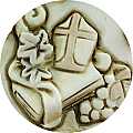 Bomboniera per la Santa Cresima realizzata in resina a forma di candela.Alcuni elementi, quali l'angelo, la bambina, la stella e l'uva sono in rilievo.Questa candela è adatta anche come segnaposto per il giorno della comunione.