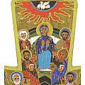 Croce raffigurante la Pentecoste in stile bizantino.Per capire l'importanza dell'icona della Pentecoste è necessario scoprire sulla parte bassa della stessa la presenza dell'aspostolo Paolo: sulla croce non è raffigurato solo l'evento della Pentecoste ma la missione evangelizzatrice affidata dal Signore Gesù agli apostoli ed hai loro successori.L'immagine è una stampa su croce in legno mdf con bordo in oro a caldo. Il cordoncino sul retro consente di appendere la croce al muro.Dimensioni: 10,5 x 14 cm. Realizzato artigianalmente in Italia.