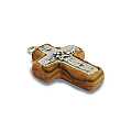Croce Papa Francesco in metallo su legno ulivo cm 3 con laccio