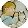 Bomboniera per la prima comunione realizzata in resina a forma di candela.Alcuni elementi,quali l'angelo,la bambina la stella,l'uva ,sono in rilievo.Questa candela è adatta anche come segnaposto per il giorno della comunione.