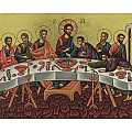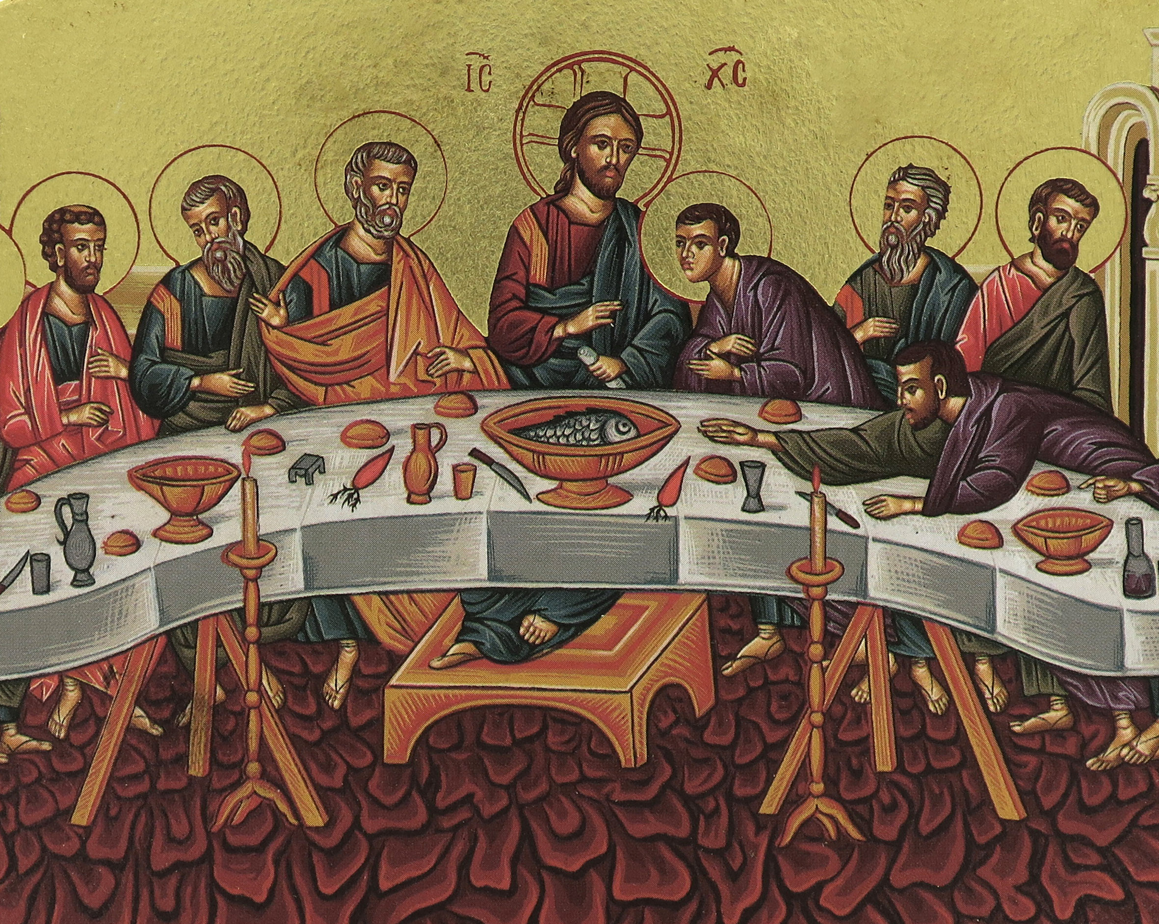 Icona Ultima cena, Icona in Stile Arte Bizantina, Icona su Legno Rifinita con Aureole, Scritte e Bordure Fatte a Mano, Produzione Greca, idea regalo per Comunione - 24 x 18 Cm