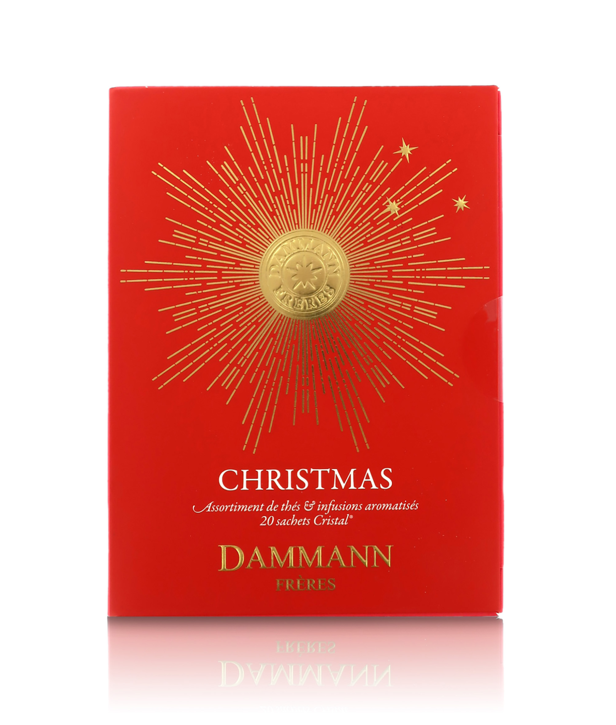 Assortimento di 5 tè natalizi aromatizzati. 4 esclusive bustine Cristal per ogni miscela, per un totale di 20 filtri (peso netto: 40g). Una elegante scatola rossa in cartoncino con decori in color oro, molto natalizia, custodisce i seguenti gusti di tè, tutti da scoprire e apprezzare: Christmas Tea (tè nero aromatizzato all'arancia, maraschino, caramello e ananas); Christmas Tea Vert (tè verde aromatizzato alla mela verde, cannella, scorze d'arancia, vaniglia e mandorla amara); Rooibos de Noël (rooibos aromatizzato con spezie varie, tra cui zenzero, pepe rosa e chiodi di garofano); Carcadet de Noël (infuso alla rosa canina, mela e ibisco, mandorla amara, pepe, cardamomo e vaniglia); Tisane de Noël (tisana aromatizzata alla melissa, cannella, fave di cacao, cardamomo, liquirizia*, zenzero, pepe rosa, chiodi di garofano, pepe nero, petali di fiori, aroma di cioccolato). *Contiene liquirizia. Le persone che soffrono d'ipertensione dovrebbero evitare un consumo eccessivo. La gloriosa storia di Dammann Frères comincia nel 1692 con l'autorizzazione di Luigi XIV a importare tè in Francia. Dopo più di tre secoli, Dammann Frères continua a essere riconosciuta come una istituzione, commercializzando più di 300 varianti di tè pregiato in formato sfuso, elegantissime confezioni di latta o raffinate bustine Cristal. Conservare in luogo fresco e asciutto, al riparo dalla luce e lontano da fonti di calore.