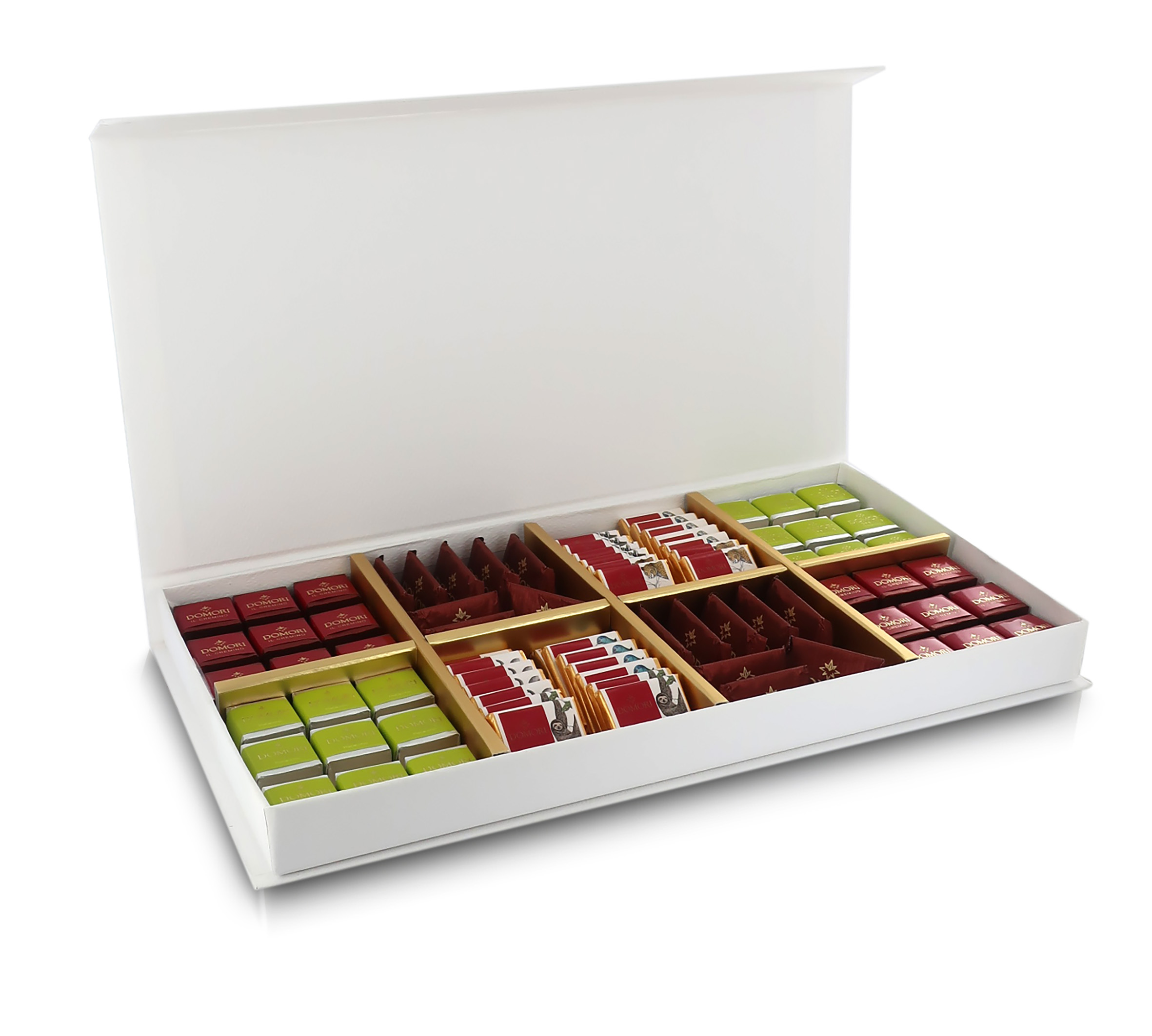 Collezione N° 8, Scatola di 80 Cioccolatini con Selezione Speciale di Mini-Gianduiotti, Cremini e Napolitains, 565 Grammi
