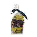 Sacchettino appartenente alla linea "I Piccoli Assaggi", con 24 cioccolatini artigianali "Napolitain" T'a Milano in gusti assortiti. I Napolitain, classici cioccolatini quadrati da 8g l'uno, vengono proposti nelle seguenti varianti: • cioccolato fondente 66% monorigine Venezuela; • cioccolato fondente 66% monorigine Venezuela al limone; • cioccolato fondente 75% monorigine Venezuela. Il sacchettino di Napolitains è perfetto come piccola idea regalo da solo, oppure da inserire in un cesto gastronomico di eccellenze italiane.Peso netto: 192g. Conservare in luogo fresco e asciutto, al riparo dalla luce e da fonti di calore. "T'a Milano" è la firma della giovane ma tradizionale azienda di pasticceria e cioccolateria artigianale milanese che tutt'ora crea orgogliosamente le proprie delizie nei territori della provincia della Madunina. È un marchio che incorpora tanto la storia quanto la voglia d'innovazione, offrendo prodotti di altissimo livello che rientrano a pieno titolo in quel "Made in Italy" culinario che diventa eccellenza. Il loro è un cioccolato pluripremiato, che ha ottenuto diversi riconoscimenti di settore, tra cui vari International Chocolate Award e premi "Tavoletta d'Oro".