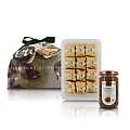 Regalate un cesto gastronomico natalizio ai vostri amici, alla vostra famiglia o ai vostri collaboratori di lavoro più fidati. Abbiamo creato per voi una speciale collezione di cesti di Natale con prodotti tipici dolci e/o salati per permettervi di dimostrare a coloro a cui tenete in modo particolare il vostro affetto. Questo cesto natalizio è dedicato agli amanti della castagna e contiene una selezione speciale di prodotti in cui il frutto per eccellenza del periodo autunnale la fa da padrone: 1 PANETTONE Vergani da 750g ai marron glacé, 1 vasetto di crema di marroni e vaniglia da 200g della Agrimontana e 1 confezione di 12 marron glacé Passerini (250g totali circa), incartati singolarmente nel tradizionale involucro di stagnola luccicante color oro. Effetto "wow" assicurato! Si tratta di prodotti d'eccellenza italiana, appositamente selezionati per voi per la loro qualità e particolarità, contenuti in un bellissimo e robusto cesto di vimini rettangolare con apertura a cofanetto. Il cesto, foderato di tessuto, è dotato di dettagli applicati in simil-pelle, come la doppia chiusura con fibbia e le comode maniglie laterali. Una volta gustate le prelibatezze di questa strenna natalizia, potrete utilizzare l'elegante cesto di vimini, che ricorda un po' i cesti vintage per picnic, come contenitore generico per la casa. Rispetto ad altre scatole che finiscono nascoste da qualche parte, questo cesto farà un figurone se lasciato in bellavista.