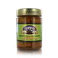 Filetti di pregiato tarantello di tonno rosso del Mediterraneo sott'olio, in vasetto da 300g. Ingredienti: tarantello, olio extravergine d'oliva d'oliva, sale marino. Come la ventresca, si consuma "come tolto dalla confezione", per gustarne a pieno la sua unicità. Ottimo con patate lesse salate a piacere o con del cous cous a vapore realizzato con un delicato brodo di pesce e scorza di limone. Conservazione: riporre in frigo dopo l'apertura e consumare entro 1/3 giorni. Il tarantello di tonno rosso, uno dei tagli più pregiati del pesce, è il filetto sopra la ventresca. Ha una consistenza semi morbida e vanta pochi grassi. Risulta necessaria una certa esperienza per salvaguardare tale filetto e la ventresca; mani poco esperte rischierebbero di rovinare entrambi. Questo taglio "gourmet", dopo essere cotto a vapore e lasciato riposare su teli di lino per 24 ore in un'apposita cella di asciugatura, viene sezionato in filetti più piccoli che vengono collocati in stagionatura per ben 24 mesi dopo esser stati sterilizzati in autoclave. Da ogni TONNO pulito si ottiene solo una quantità di tarantello pari al 4%. Il nome del taglio richiama i suoi scopritori: i pescatori tarantini erano soliti prendersi cura di questo taglio per poi rivenderlo come prodotto pregiato rispetto ai più comuni filetti di TONNO. L'Antica Tonnara di Favignana nasce dalla passione di Antonio Tammaro, che nel 1985 apre un piccolo negozio di gastronomia sull'Isola di Favignana. Oggi, la tradizione di famiglia continua con l'impegno di Michele, che cura la qualità e la ricercatezza dei prodotti. Punti chiave dell'attività sono l'accurata selezione del pescato e la lavorazione artigianale.