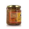 Filetti di ventresca di tonno rosso del Mediterraneo sott'olio, in vasetto da 300g. Ingredienti: ventresca di TONNO, olio extravergine d'oliva, sale marino. Conservazione: riporre in frigo dopo l’apertura e consumare entro 1/3 giorni. La ventresca è una parte pregiata di TONNO corrispondente al quarto inferiore della pancia, caratterizzata da una componente significativamente grassa che rende questo taglio estremamente morbido e profumato. Ottima come antipasto, da gustare anche a crudo sugli spaghetti aglio, olio e PREZZEMOLO o in alternativa a un secondo di pesce. La ventresca dell'Antica Tonnara di Favignana si scioglie in bocca e sprigiona un avvolgente bouquet di sapori delicatissimi. L'abilità degli operatori addetti alla lavorazione manuale della tonnara consente di ottenere un prodotto di primissima qualità. Non a caso, per assicurarsi di offrire della ventresca di altissima qualità, grassa al punto giusto, si impiegano solo tonni di peso compreso tra 50 e 90 kg. La cottura al vapore avviene in modo molto dolce, affinché la temperatura non rovini il saporito e prezioso grasso dalle fibre. L'Antica Tonnara di Favignana nasce dalla passione di Antonio Tammaro, che nel 1985 apre un piccolo negozio di gastronomia sull'Isola di Favignana. Oggi, la tradizione di famiglia continua con l'impegno di Michele che, con la stessa dedizione dei suoi predecessori, si prende cura della qualità e della ricercatezza dei prodotti che hanno reso grande il nome dell'Antica Tonnara di Favignana. Punti chiave dell'attività sono la selezione del pescato molto accurata e la lavorazione artigianale della materia prima.