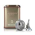 Questa confezione regalo chiamata "N° 477" è un piccolo kit dalla pratica apertura a cassetto. Contiene l'iconico tè verde "Miss Dammann" sfuso (in barattolino di latta da 30g) e un infusore abbellito da una Torre Eiffel in miniatura. Il famoso Miss Dammann è un tè verde aromatizzato con pezzetti di zenzero, olio essenziale di lime, aroma di frutto della passione e petali di fiori. La gloriosa storia di Dammann Frères comincia nel 1692 con l'autorizzazione di Luigi XIV a importare tè in Francia. Dopo più di tre secoli, Dammann Frères continua a essere riconosciuta come una istituzione, commercializzando più di 300 varianti di tè pregiato in vari formati, tra cui pacchetti di tè sfuso, elegantissime confezioni di latta o raffinate bustine Cristal.