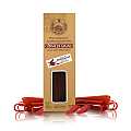 Linguine al peperoncino. Fanno parte della linea di pasta al germe di grano aromatizzata, ma in confezione rigida ("Le Scatoline"). 8 confezioni da 250 grammi. Ingredienti: semola di grano duro, acqua, germe di grano, peperoncino rosso in polvere, bietola rossa in polvere. Allergeni: contiene cereali contenenti glutine. Fabbricato in stabilimento che lavora anche prodotti a base di uova, di pesce, prodotti derivati dei molluschi. Condizioni di conservazione: tenere in luogo asciutto e lontano dai cereali. La pasta Morelli è preparata artigianalmente in un pastificio a gestione familiare in provincia di Pisa, fondato nel 1860. Ormai da ben 5 generazioni, la pasta viene preparata usando ottime semole di grano duro e tecniche classiche, che includono trafilatura al bronzo ed essiccatura a basse temperature, nel pieno rispetto della tradizione. Fiore all'occhiello della produzione Morelli è la pasta al germe di grano, che impiega un ingrediente naturale solitamente scartato, che la lavorazione artigianale, invece, consente di reintrodurre nell'impasto, donando alla pasta un gusto e un aroma molto particolari. La gamma di paste Morelli include: pasta al germe di grano, le tipicità regionali, la pasta all'uovo e germe di grano, la pasta integrale di filiera Toscana e integrale Senatore Cappelli, pasta di legumi, pasta senza glutine, grani antichi, farro e kamut, pasta aromatizzata monogusto, multicolore e articoli da regalo.