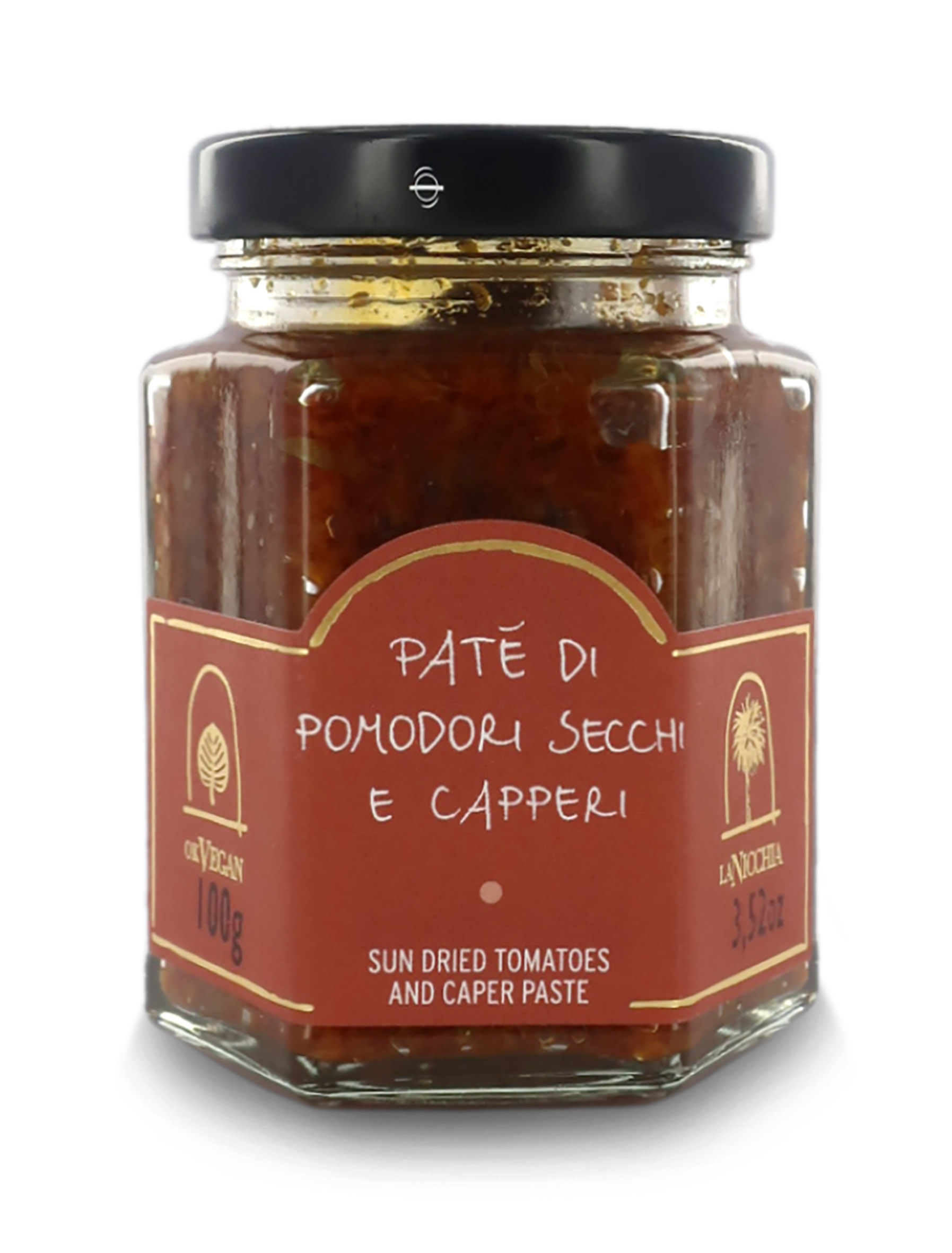 Il prodotto simbolo dell'isola siciliana di Pantelleria, il cappero, si unisce al gusto mediterraneo dei pomodori secchi per dare vita a un pâté dal gusto ricco e deciso, legato da ottimo olio extravergine d'oliva. Il pâté spalmabile de La Nicchia, realizzato con sole materie prime selezionate, vanta una consistenza grossolana e risulta ideale su carni bianche alla piastra o alla griglia. Ottimo per farcire crostini appetitosi per aperitivi, brunch o merende salate. In vasetto di vetro da 100g. Ingredienti: olio extravergine d’oliva, 44% pomodori secchi (sale, aceto di vino), 10% capperi, prezzemolo, basilico. La Nicchia non è soltanto un tradizionale capperificio della Contrada Scauri (Pantelleria) fondato nel 1949, ma è anche un’azienda agricola con coltivazioni presso località Serraglia. Inoltre, vanta un laboratorio artigianale nella Contrada Khazzen, nel quale l’esperienza pluriennale si unisce allo studio e alla ricerca sulle materie prime pantesche. I frutti della terra di Pantelleria vengono lavorati nel modo più semplice possibile, nel rispetto della loro unicità. La gamma de La Nicchia annovera prodotti sottolio, essiccati aromatici, sotto sale, spalmabili e dolcezze.