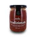 Sugo tradizionale al pomodoro, pronto da scaldare (2/3 min.) e da consumare. Contiene pomodoro pelato, olio extravergine di oliva e cipolla. La semplicità e la genuinità del gusto del pomodoro rende questo condimento uno dei più amati sughi della tradizione culinaria italiana. Ingredienti: pomodori pelati 95%, cipolla 2%, olio extravergine di oliva 1%, sale. Prodotto in uno stabilimento che utilizza sedano, frutta secca in guscio, pesce, pane, senape, prodotti a base di latte e derivati delle uova. Modalità di conservazione: il prodotto chiuso si conserva a temperatura ambiente. Dopo l'apertura, coprire il prodotto rimasto con olio extravergine di oliva di qualità, conservare in frigorifero e consumare entro un paio di giorni. La Famiglia Ursini vanta una lunga tradizione nel mondo dell'olio. Già nel 1800 i suoi componenti erano considerati esperti della cura degli oliveti. Ai giorni nostri, a Fossacesia, la magnifica Costa dei Trabocchi in Abruzzo ospita oliveti controllati, un frantoio di famiglia e una cucina-laboratorio, in cui sapienza ed esperienza si uniscono alla creatività e all'innovazione per concepire oli e prodotti alimentari di grande qualità.