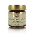 Mostarda di anguria bianca con tartufo nero estivo (Tuber Aestivum Vitt); vasetto da 220g. Per gli amanti di questa tradizionale pietanza italiana, la mostarda d'anguria bianca al tartufo rappresenta sicuramente una varietà unica, assolutamente da assaggiare. Perfetta in accompagnamento a carne grigliata o bollita, formaggio e carpaccio di pesce. Ingredienti: anguria bianca 58%, zucchero, limone non trattato, tartufo nero (Tuber Aestivum Vitt) 4%, essenza di senape, aroma. Grazioli Tartufi lavora da quasi cent’anni per reperire, lavorare e commercializzare uno tra i prodotti naturali più preziosi e pregiati al mondo. Forti di una consolidata esperienza e una conoscenza approfondita del settore, Grazioli Tartufi consente a ristoranti stellati e a gastronomie prestigiose, tanto in Italia quanto nel resto del mondo, di poter offrire specialità gourmet a base di tartufo che si distinguono per la loro qualità eccelsa.